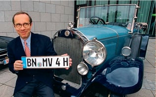 Stolz hält er ein H-Kennzeichen in den Händen – ein Meilenstein für die Oldtimer-Szene, den der DEUVET